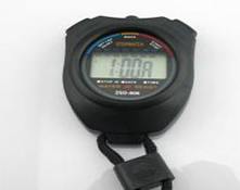 Cronómetro digital profesional que muestra la hora, minutos, segundos, indicador AM/PM, mes, fecha y día de la semana.